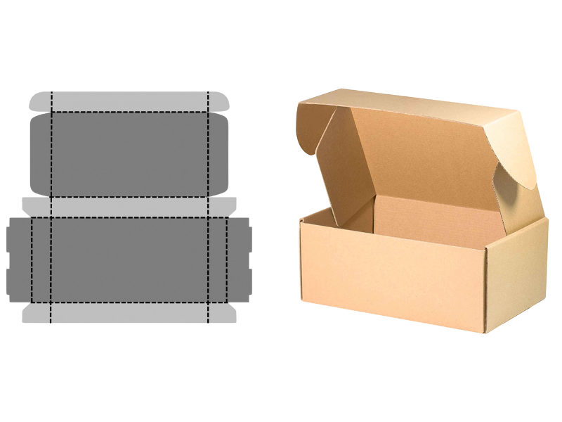 Flat boxes or tray-style packaging, commonly used in e-commerce and retail